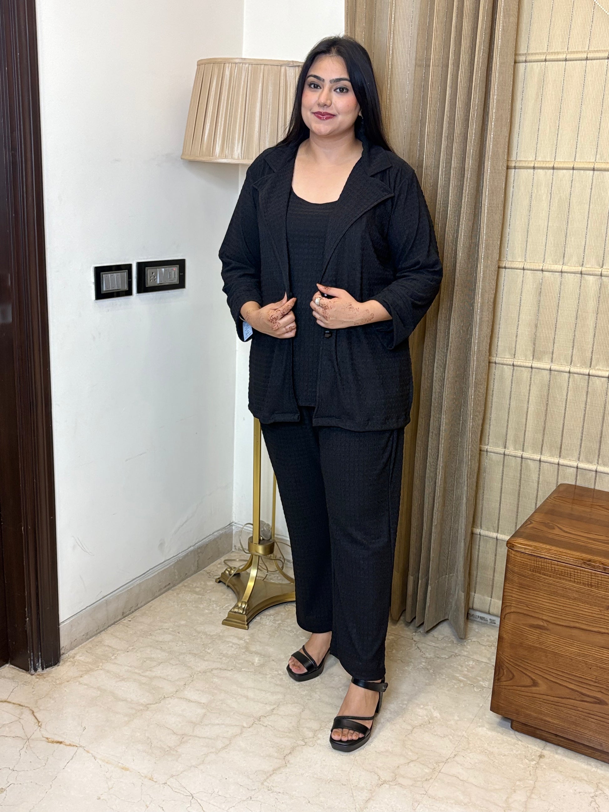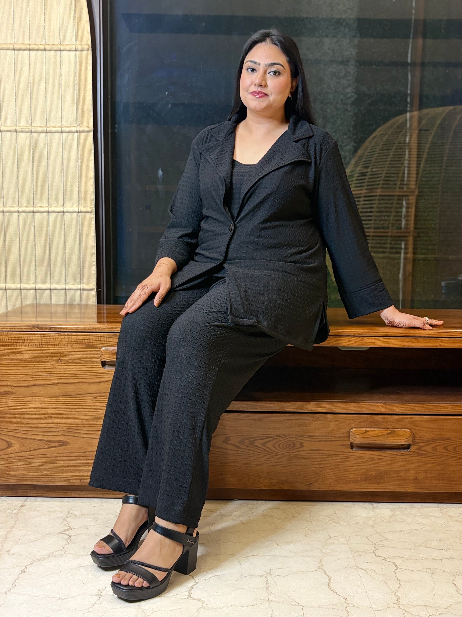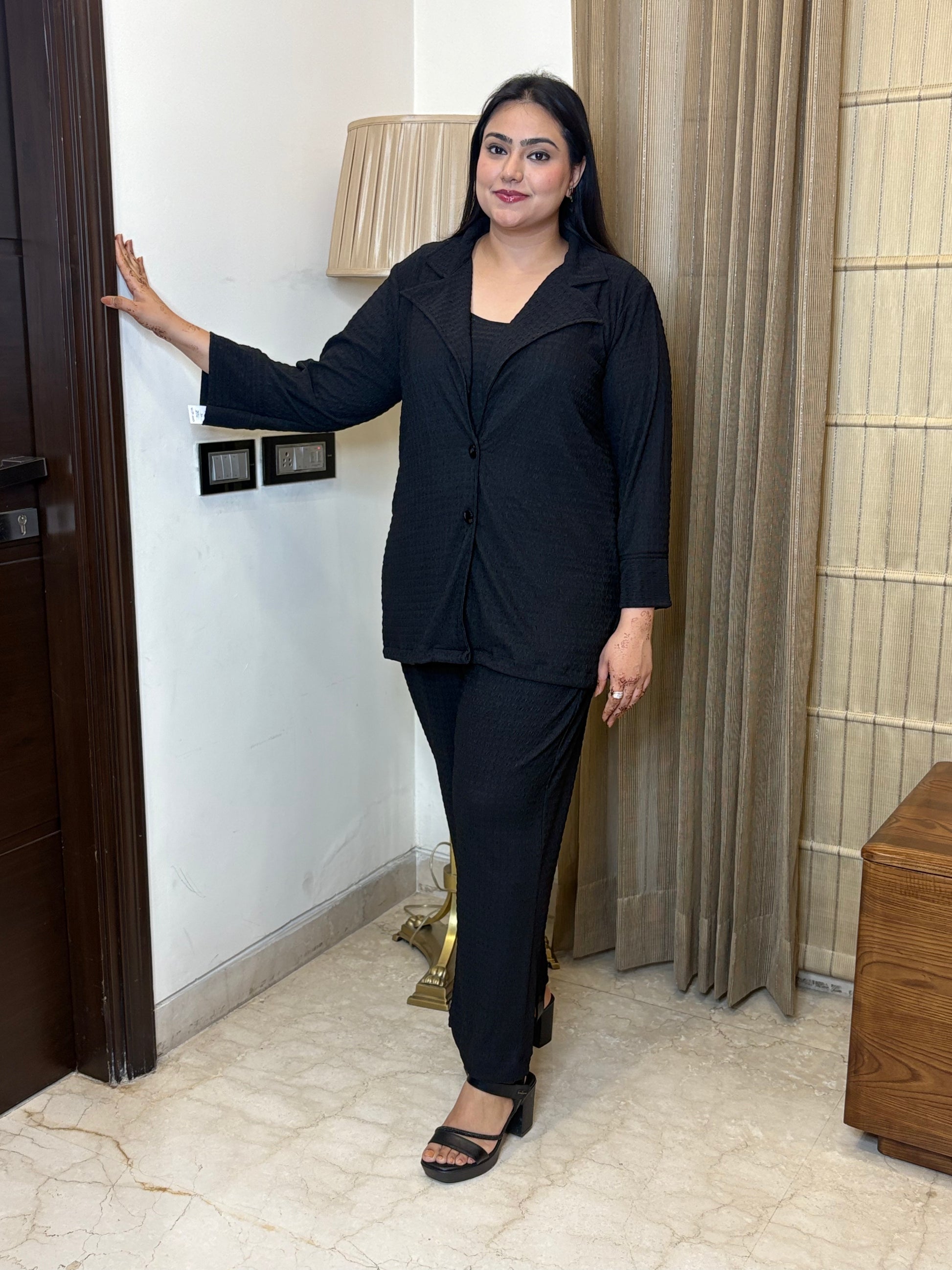 Turn heads effortlessly in this elegant BlackCo-ord Set, crafted from crushed stretchable lycra for that perfect blend of comfort and style. The flattering fit, smooth texture, and graceful drape enhance your curves while letting you move with ease — from brunch dates to evening soirees, this look does it all!