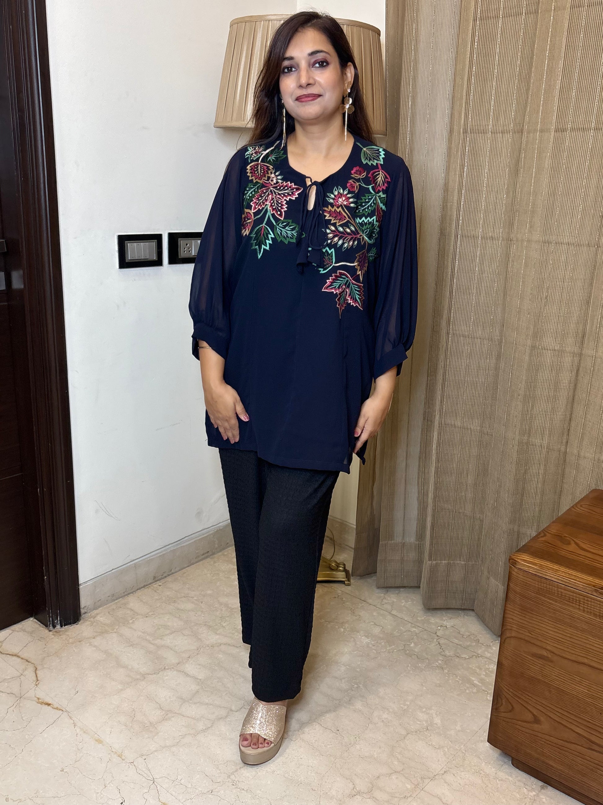 Drape yourself in effortless elegance with this stunning georgette top, beautifully detailed with delicate thread work. The soft lining and flowy silhouette ensure a flattering fit that moves with grace and comfort all day long.