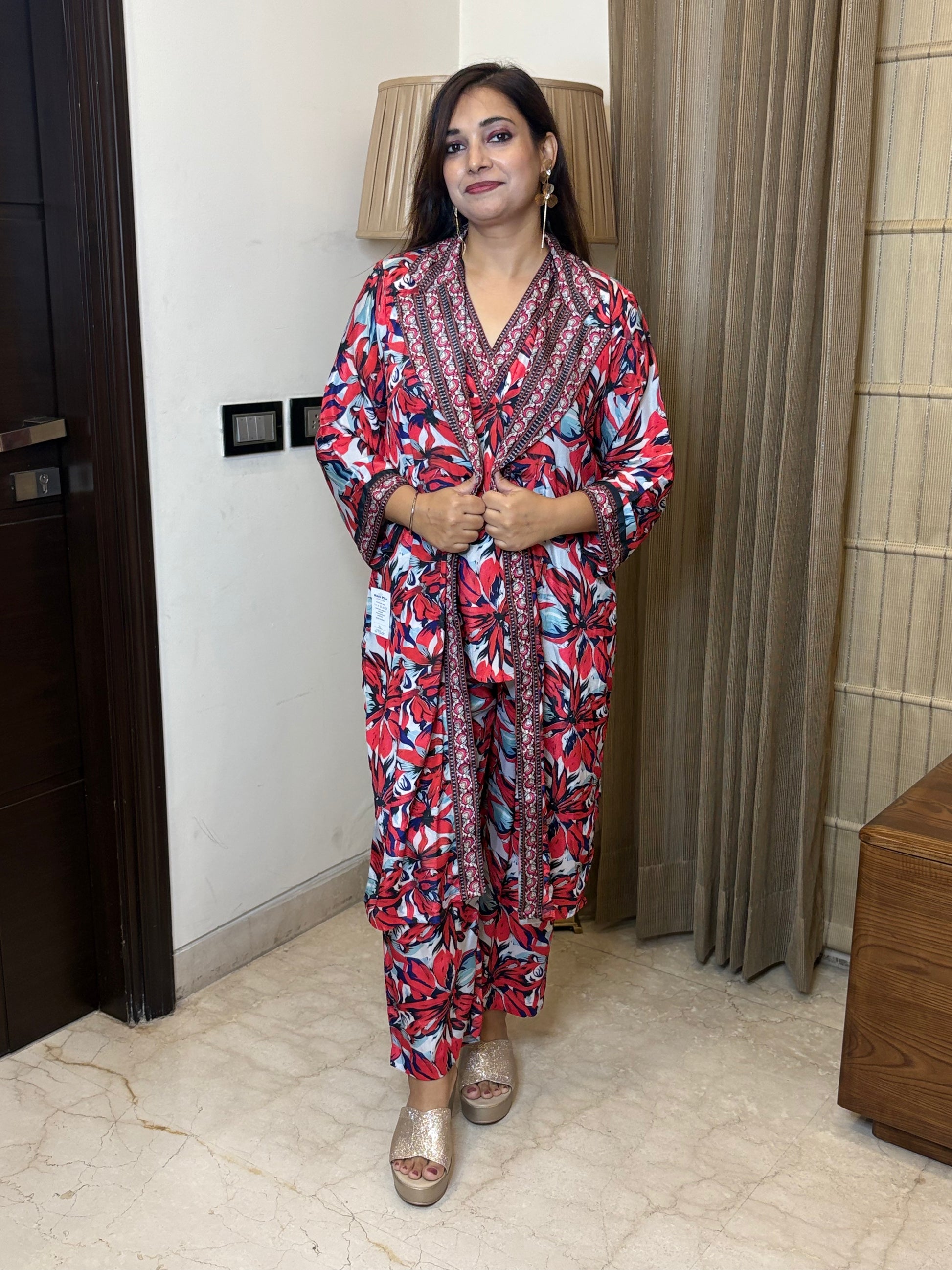 Step into effortless elegance with this stunning crepe printed 3-piece co-ord set. The flattering fit, smooth fabric, and flowy silhouette beautifully enhance your natural charm while keeping you cool and comfy all day long. Perfect for brunch dates, casual outings, or festive get-togethers — it’s your go-to outfit for every mood and moment.